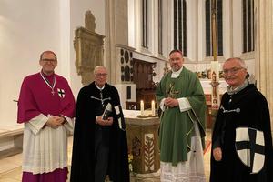 Am 11.10.2020 nahm die Komturei An Enns und Salzach am Jubiläumsgottesdienst zur Feier des 80. Geburtstags von Altbischof Dr. Ludwig Schwarz bzw. zur Feier des 40. Priesterjubiläums von Bischof Dr. Manfred Scheuer im Linzer Mariendom, unter Einhaltung strengster Coronabestimmungen, teil. Die Familiaren stellten einerseits eine Abordnung im Kleinen Ornat und waren sie andererseits durch ihre beiden Geistlichen Assistenten als Mitglieder des Domkapitels sowie durch den persönlichen Zeremoniär von Bischof Dr. Manfred Scheuer vertreten. Die Festlichkeit des Anlasses spiegelte sich auch in der musikalischen Gestaltung des Gottesdienstes wieder: unter Leitung von Domkapellmeister Mag. Josef Habringer wurde Wolfgang Amadeus Mozarts Krönungsmesse auf Wunsch des Jubilars Bischof Dr. Ludwig Schwarz musiziert.