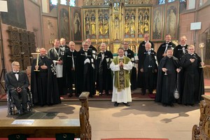 An den 813. Geburtstag der heiligen Elisabeth von Thüringen, der Patronin des Deutschen Ordens, wollte die Komturei „An Rhein und Main“ mit einer ökumenischen Vesper unter Leitung des Fuldaer Weihbischofs Prof. Dr. Karlheinz Diez an historischem Ort, in der Elisabethkirche in Marburg, erinnern. Die strengen Auflagen der Evangelischen Kirche von Kurhessen-Waldeck machten es jedoch unmöglich, mit einem festlichen Gottesdienst auch ein Zeichen in die Stadt hinein zu setzen. Stattdessen trafen sich die Familiaren der Komturei am 11. Juli 2020 zu einer Vorabendmesse in der Deutschordenskirche in Frankfurt-Sachsenhausen – quasi unter dem mittelalterlichen Elisabethenfries an der südlichen Chorwand.