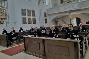 Nach langer Corana-Pause war die Freude der anwesenden Confratres groß, sich wieder zu einem Konveniat zu treffen. Weihbischof Confr. Dr. Josef Graf zelebrierte die Hl. Messe in der Wallfahrtskirche Mariä Himmelfahrt in Dechbetten und wies in seiner Predigt darauf hin, dass die Kirche zwar vom Staat nicht als systemrelevant angesehen werde, aber sie für alle Gläubigen heilsrelevant sei.