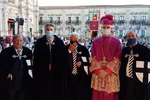 Domenica 26 luglio 2020, una rappresentanza del Baliato di Santa Maria degli Alemanni (Sicilia) e della Commenda di Santa Venera al pozzo, composta dal Commendatore Clodomiro Tavani FamOT, dai confratelli Michele Cirignotta FamOT Salvatore Saglimbene FamOT, guidata dal Balivo Antonino Sala FamOT, ha partecipato con le insegne dell’Ordine, su invito della Diocesi e del Comune di Acireale, al solenne pontificale in onore della patrona Santa Venera tenuto dal nostro illustrissimo confratello S. E. reverendissima mons. Antonino Raspanti FamOT, Vescovo di Acireale e vice presidente della CEI (Conferenza Episcopale Italiana), che si è svolto sul piano della splendida e monumentale cattedrale dalle 20. Allo stesso hanno partecipato le rappresentanze dell’Ordine Equestre del Santo Sepolcro di Gerusalemme, dell’Ordine di San Gregorio Magno, dell’Ordine Costantiniano di San Giorgio e dell'Ordine Civile di Casa Savoia e le più alte cariche cittadine sia civili che religiose che militari.