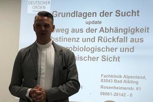 Noch nicht offiziell vom Hw H Prior eingeweiht als Einrichtung der Deutschordenswerke, aber so hat dennoch Pater Jörg Eickelpasch als Leiter der Seelsorge des Ordens für die Einrichtungen zusammen mit dem „Hausgeistlichen“ Pater Clemes Pieper einen Besuch der Komturei an Isar, Lech und Donau organisiert. Da das Hilfswerk der Familiaren jährlich eine Einrichtung in ihrem Raum besucht, so lag es nahe Bad Aibling zu besuchen, wo erst seit wenigen Wochen ein hochqualifiziertes und erfahrenes Team an Ärzten und Therapeuten Menschen begleitet auf ihren Weg in ein suchtmittelfreies , selbstbestimmtes Leben.