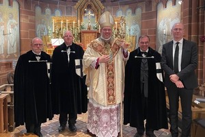 Am 26. Mai 2022 war S.E. H.H. Hochmeister eingeladen, in Mettlach an der Saar die Lutwinus-Wallfahrt mit der Schreinhebung zu Beginn eines Pontifikalamtes feierlich zu eröffnen. Lutwinus, der dem fränkischen Hochadel entstammte, gründete vermutlich um das Jahr 675 in Mettlach die Abtei Sankt Peter und Maria als Eigenkloster, in das er um das Jahr 696 nach dem Tod seiner Gemahlin eintrat. Nach dem Tod seines Bruders wurde Lutwinus 705 als dessen Nachfolger Bischof von Trier, nach der Schlacht von Vincy 717 auch Bischof von Reims. Pflichtwallfahrten der Bewohner im näheren und weiteren Umkreis von Mettlach am Kirchweihtag der Mettlacher Dionysiuskirche sind bis in die Zeit um 950 bezeugt. Seit dem Jahr 2003 ist die Mettlacher Wallfahrt auf die Pfingstnovene zwischen Christi Himmelfahrt und Pfingsten ausgedehnt mit der Lutwinus-Prozession am Sonntag nach Christi Himmelfahrt als Höhepunkt.
