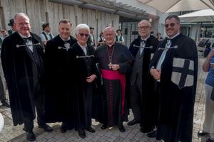 Zum Wahlkonvent versammelten sich 17 Confratres. Als besondere Gäste durfte der scheidende Komtur Mag. Dr. Johannes Mühllechner P. Ewald Volgger OT, den geistlichen Assistenten Regens Mag. Michael Münzner und den Balleimeister der Ballei Österreich Prof. Dr. Rudolf Müller willkommen heißen. Nach der heiligen Messe in der Linzer Seminarkirche, der einstigen Deutschordenskirche, versammelten wir uns im Priesterseminar zum Wahlkonvent.