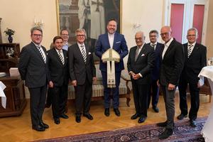 Der Hochmeister des Deutschen Ordens, Generalabt Frank Bayard OT, feierte am 11. Oktober 2021, seinen 50. Geburtstag. Eine Abordnung der Balleileitung der Ballei Österreich der Familiaren des Deutschen Ordens und die beiden Alt-Balleimeister nahmen dies zum Anlass den Hochmeister im Hochmeisteramt einen Gratulationsbesuch abzustatten. Bei Sekt und Brötchen wurde auf den Jubilar angestoßen und die Glückwünsche zum runden Geburtstag übermittelt.