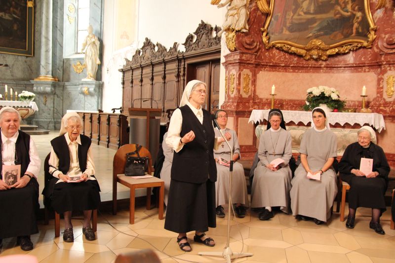 Zum Abschluss luden die Schwestern um 16.30 Uhr in die Schlosskapelle zur Vesper ein, die zu einer ganz besonderen Erfahrung wurde. Denn die Sießener Franziskanerinnen vom "Stadtkloster" in Bad Mergentheim waren zu unserer Unterstützung gekommen und werteten die Darbietung nicht nur musikalisch, sondern auch optisch deutlich auf.